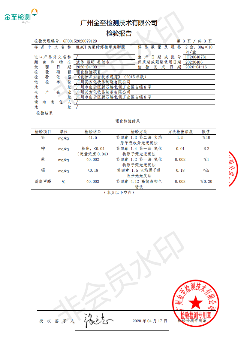 美莱纤婷植萃美胸膜 (产品质检报告)