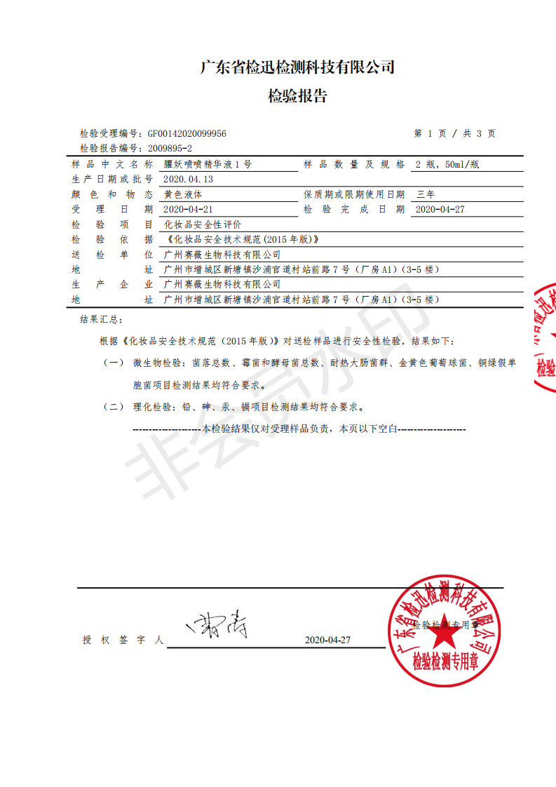 臞妖喷喷紧致套(产品检测报告)