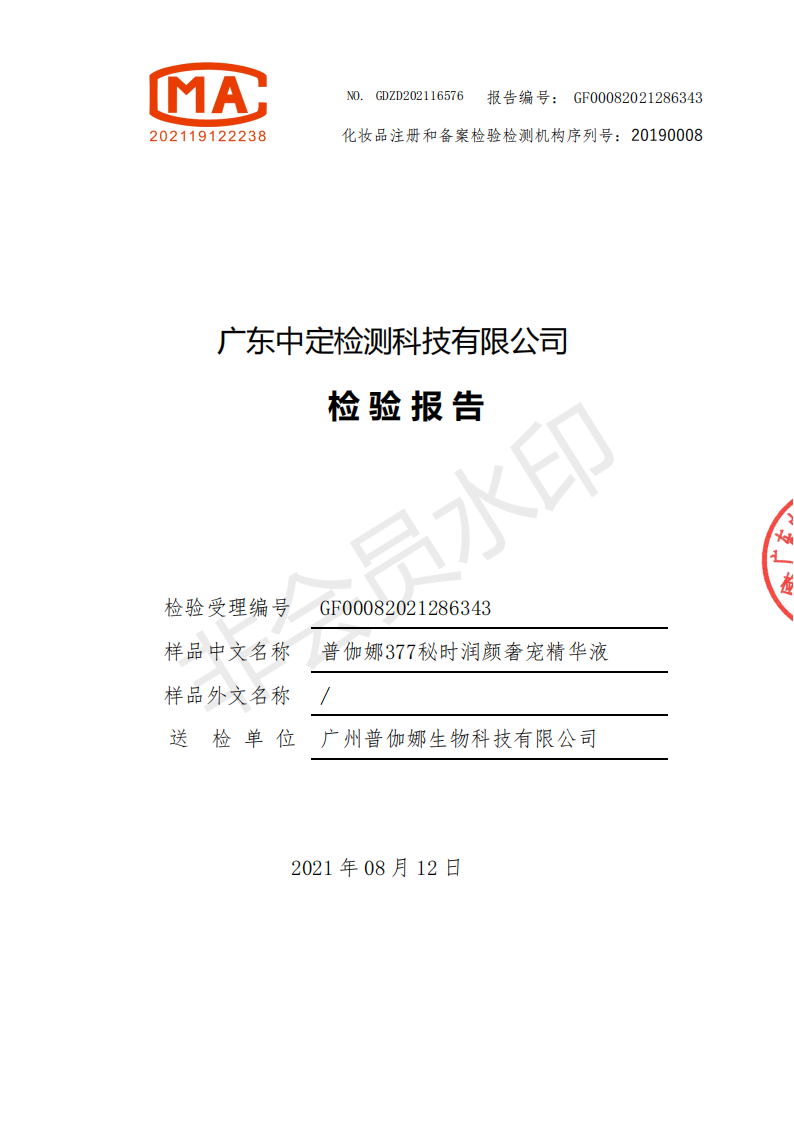 普伽娜-377秘时润颜臻宠六件套(检测报告)