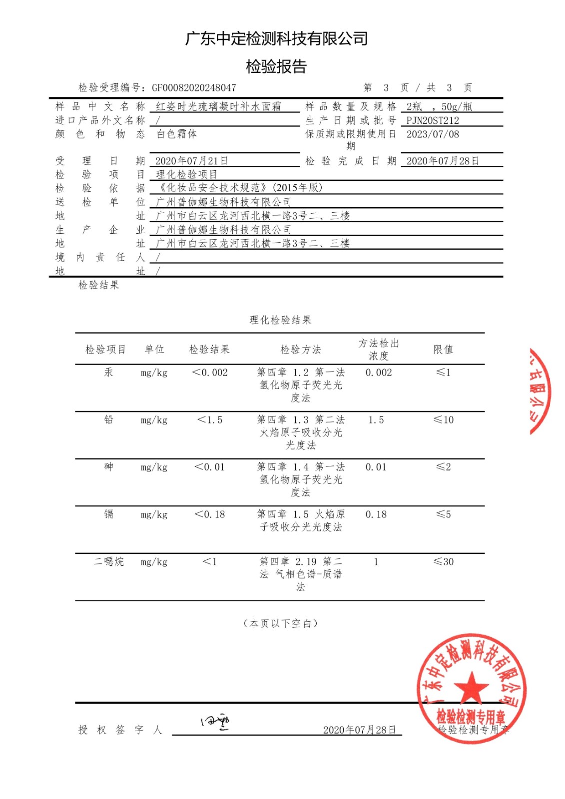 红姿-时光琉璃凝时焕肤5件套(检测报告)