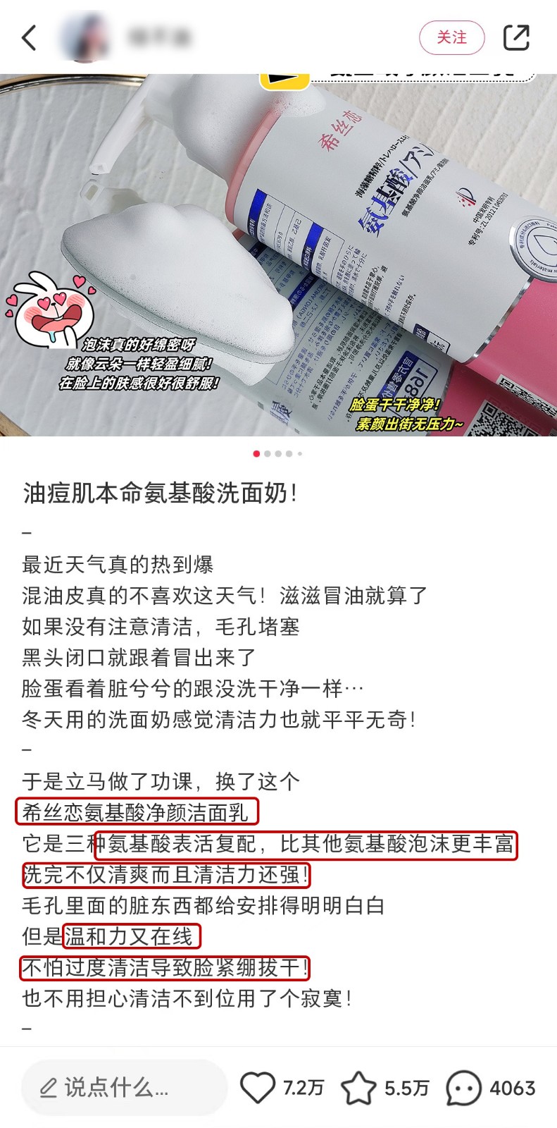 希丝恋-氨基酸净透洁面乳(发圈素材)