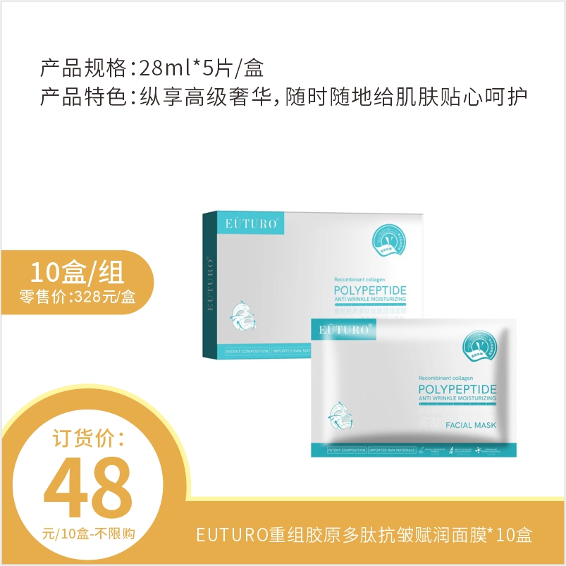 【10盒】EUTURO重组胶原多肽抗皱赋润面膜