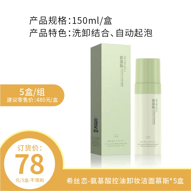 【5盒】希丝恋-氨基酸控油卸妆洁面慕斯