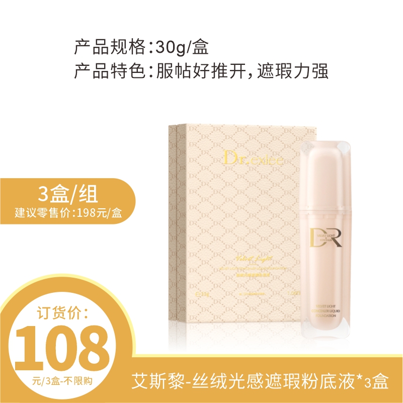 【3盒】艾斯黎-丝绒光感遮瑕粉底液